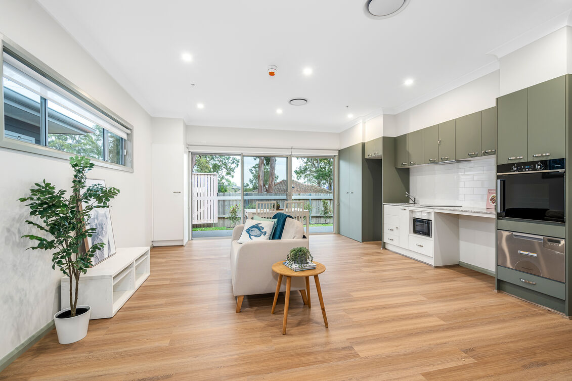 The main home features a spacious open-plan kitchen, living and dining area that creates a central hub for daily routines, shared meals and time with housemates. Bedrooms are well-sized with built-in storage and wide doorways to support easy movement throughout the home. A large accessible bathroom and a separate toilet serve the main house.